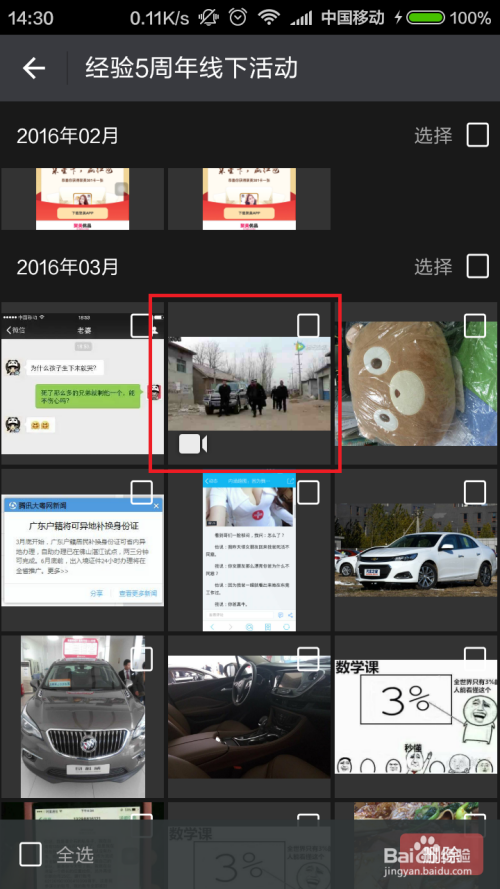 接下来,我们可以长按这些小视频文件,在弹出的功能页面中选择全选这些小视频文件,并点击删除按钮。
