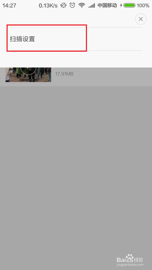 在没有删除小视频文件之前,我们可以点击页面最上方的“设置”按钮,打开扫描设置页面。