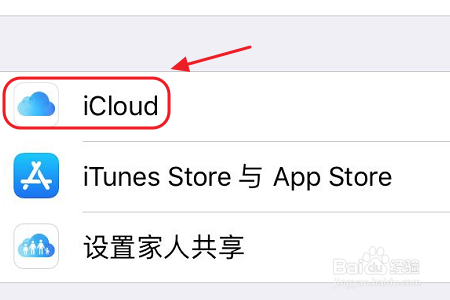 打开设置页面,显示在最上方的就是我们的账号名,一般也就是我们的本人姓名,点击此账号即可在新的页面中看到“iCloud”选项,如图二...