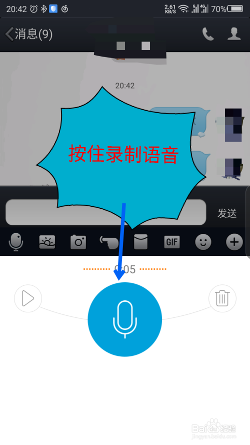 按住底下的麦克风,录制适才发送的语音。如图所示