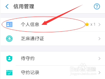 4.进入【信用办理】本家儿页面之后,点击【小我信息】按钮,如下图所示。