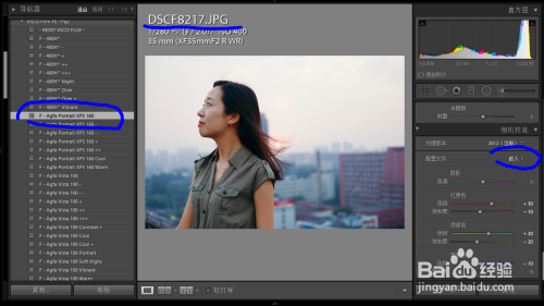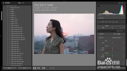 可以看到RAW的相机校准里主动匹配了camera profile,但jpg却没有,所以无法切确还原胶片色彩。而FILM预设调色水平较年夜,导致应用jpg有色阶断裂隐患。