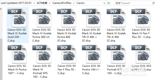 可是分歧品牌相机色彩办理分歧,那怎么包管每个相机都可以出不异的胶片色彩呢?于是随附VSCO FILM还有相机校准文件(camera profile),即每条目胶片都有对应分歧相机的较准文件,如许包管一致的胶片色彩。如图是5D4的相机校准文件。