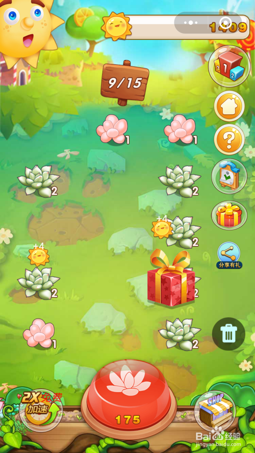 然后,进入游戏界面后,点击下面的红色莲花,即可莳植多肉,不断的点击莳植,一向点满为止。