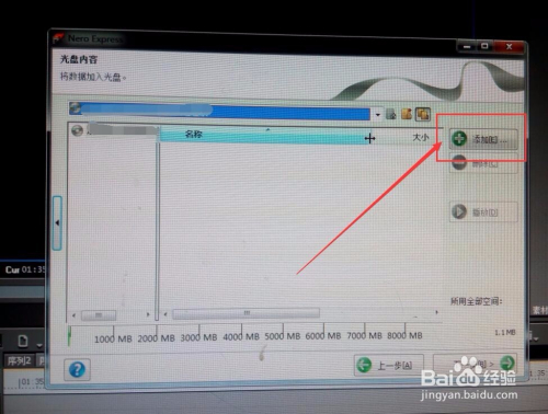 然后在光盘内容里面,点击右边的“添加”,然后选择我们要进行刻录的文件,注重总容量不要跨越了8G.