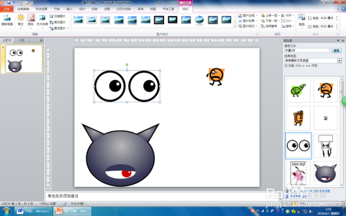 第六步:单击搜刮到的剪贴画,该剪贴画就进入到PPT页面,然后调整一个剪贴画的大小、位置即可。