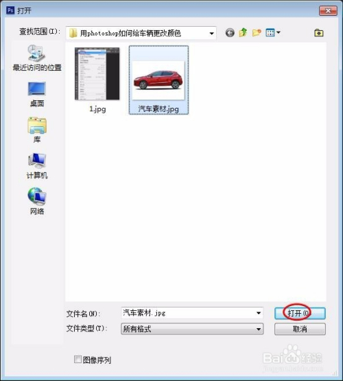 第一步:打开需要更改颜色的车辆图片。