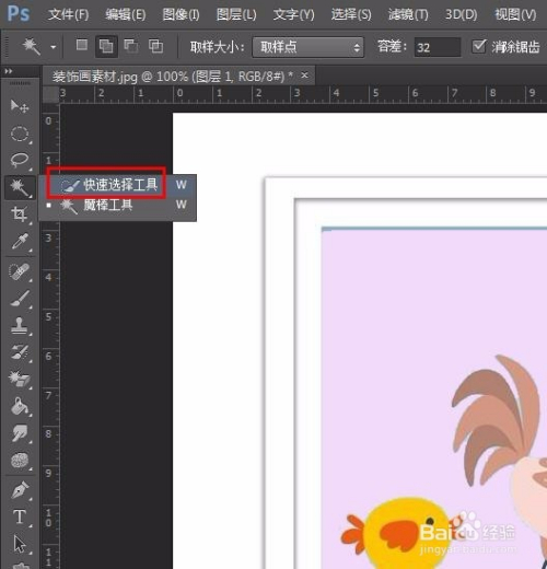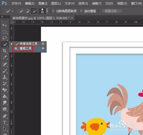 第三步:在左侧东西栏中选择“魔棒东西”,选中装饰画的布景区域。