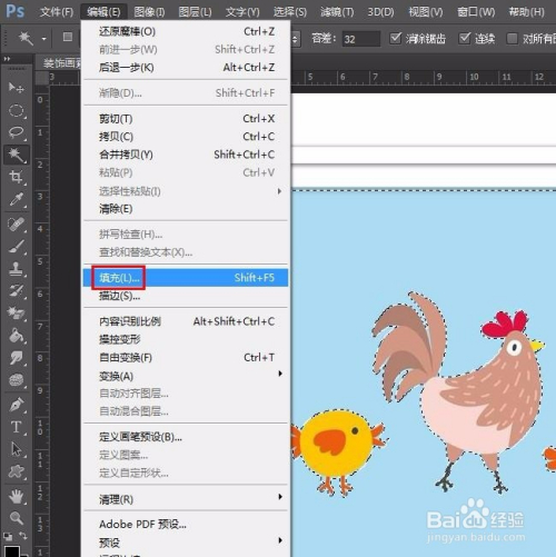 第四步:菜单栏“编纂”中选择“填充”选项。