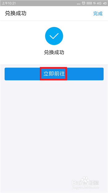 接下来系统会提醒我们已经兑换当作功,点击【当即前去】选项。