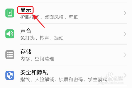 接着在设置页面中找到“显示”,点击显示今后从新页面中选择“桌面气概”,如下图所示;