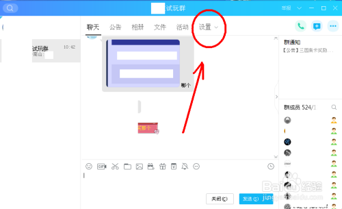 进入点窜手刺群的群后,点击“设置”。(如下图)