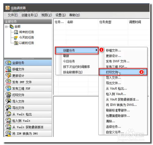 打开【使命调剂器】后,点击右键建立使命-打印文件。
