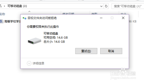 接下来,我们可以测验考试在U盘中写入一个文件,然后页面将提醒“方针拜候权限被拒绝”的信息提醒。