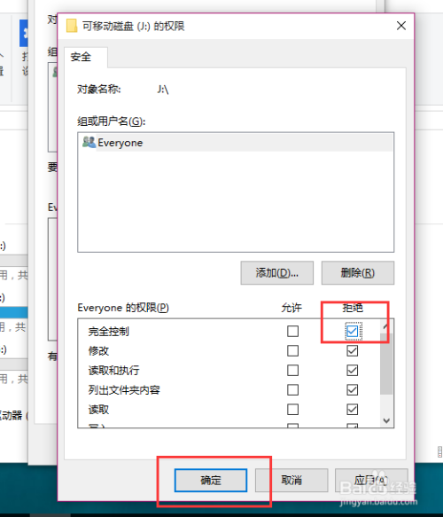 在拜候权限编纂的过程中,将其点击为"全数拒绝",然后保留对U盘的设置,U盘设备设置完毕之后,点击确定按钮即可。接下来,我们只需要测验考试双击U盘就会弹出”拒绝拜候“的信息提醒。