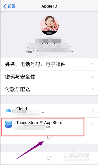 进入账户信息,点击apple store,如下图所示