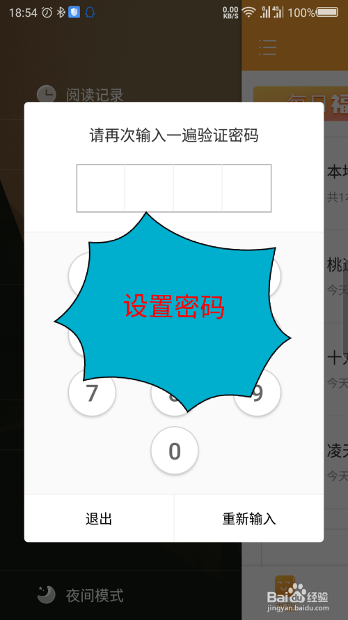 第一次利用要设置一个四位数的密码,反复输入两遍密码。如图所示