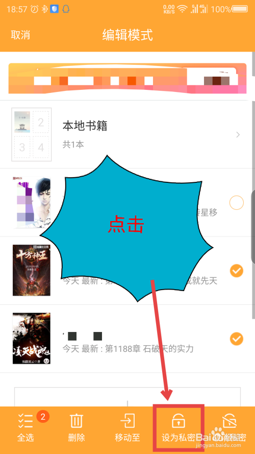 底部会弹出一个操作界面,选择小说后,点击设为隐私。如图所示