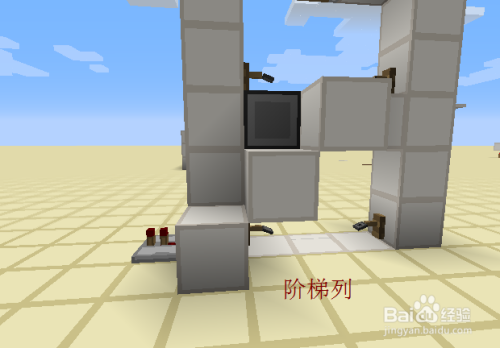 如图,在阶梯列上铺上红石线,注重最高一级的不消铺,下端则与红石中继器相连。图二是每一层的模板。