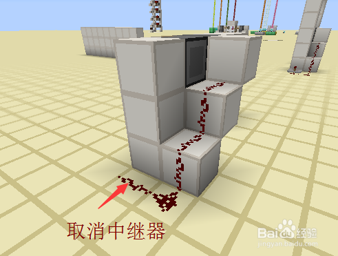在右侧绊线钩毗连的阿谁方块后背,放上一个可动端朝里的红石中继器(图1),然后在后背建造如图二所示的阶梯型方块列。