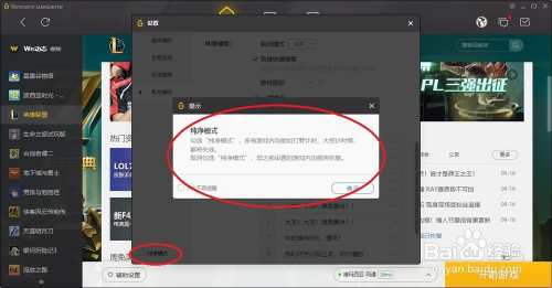如若玩家不但愿利用WeGame的辅助功能,可以点击左下角纯净模式,在弹出的窗口中点击确定