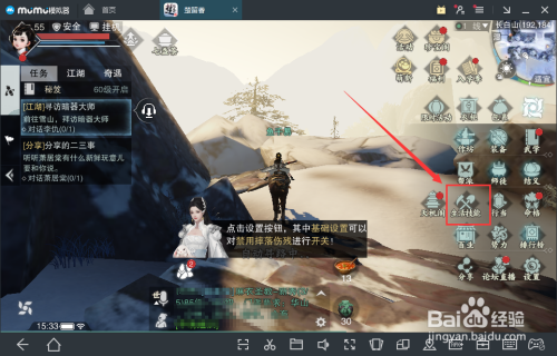 进入楚留喷鼻手游界面,在右侧找埋没菜单栏按钮并点击,如图: