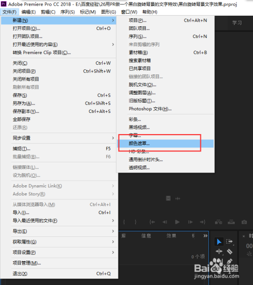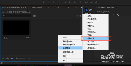 在PR的项目办理窗口中直接右键,选择新建,新建中的颜色遮罩号令,在新建一个颜色遮罩,此次设置颜色遮罩的颜色为纯白色,并定名为白色,点击确定,此刻在我们的PR项目办理窗口中就有两个口角色的颜色遮罩了。