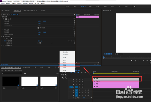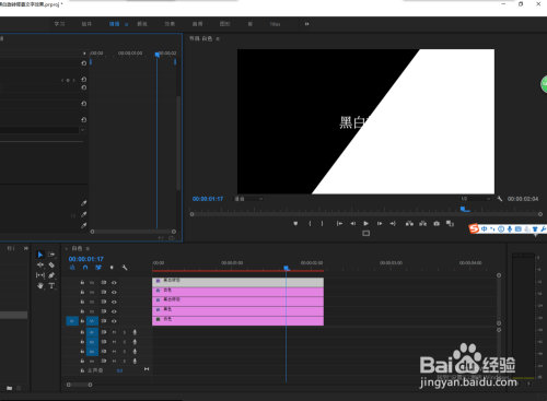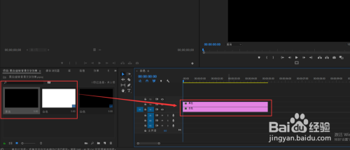先选中白色的颜色遮罩,将其拖入到时候轴窗口中单击鼠标左键,生当作一个序列,这是白色遮罩处于视频轨道1的位置,然后在把黑色遮罩拖入到视频轨道2上。