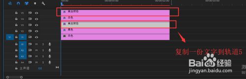 按住alt键将轨道3的文字复制一份到轨道5中,然后打开结果窗口,在结果窗口中找到“轨道遮罩键”结果,将该结果应用到轨道4中,选中轨道4,打开结果控件,将轨道遮罩键结果的遮罩选择为“视频5”,至此,结果建造完当作,可以播放预览结果了,一个口角扭转布景的文字结果建造完当作