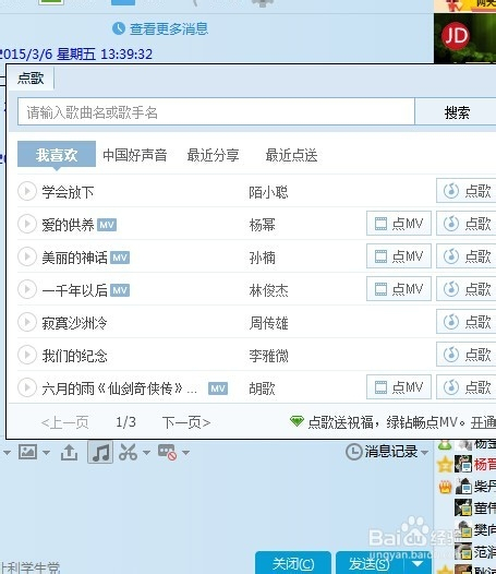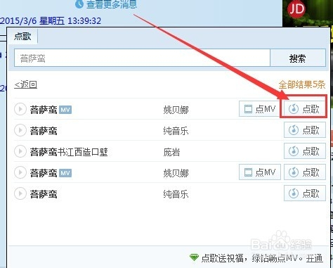 接下来,搜刮引擎将会揭示出音乐搜刮出来的成果,我们点击选择本身需要的成果,然后点击“点歌”按钮。