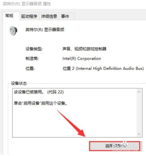 查看此设备中的状况,若是状况是禁用状况,此时点击下面的按钮将其启用就行了