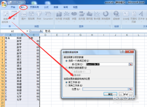 选中A、B、C三列,选择“插入——数据透视表——新工作表”。