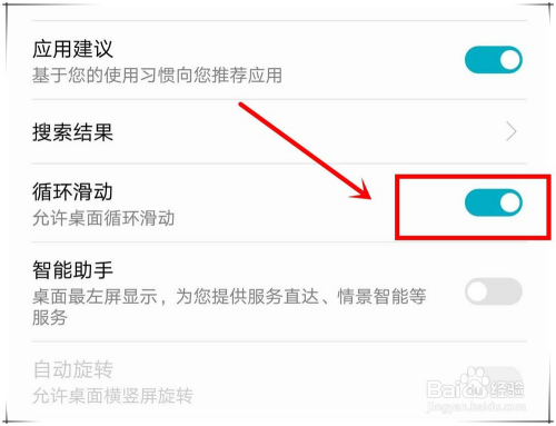 在打开的“设置”页面,查看“轮回滑动”选项后的开关是否开启,若是已经开启,将之封闭。