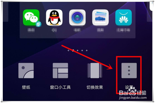 在桌面上用两支手指标的目的中心挨近滑动,打开桌面设置页面。