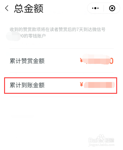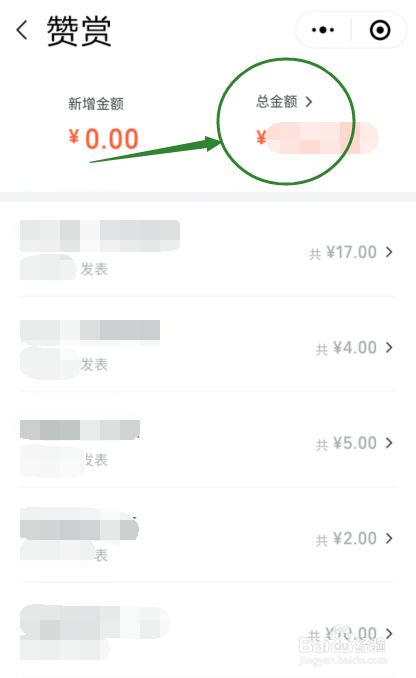 在赞赏界面右上方显示着赞赏的总金额,点击总金额。
