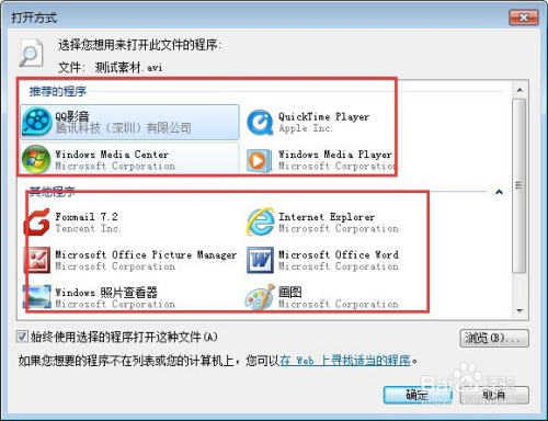 在打开的法式选择窗口,我们可以看到,有保举的法式和其他法式。