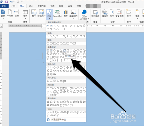 这时进入word界面,我们为平行四边形选择一个绘制地址。