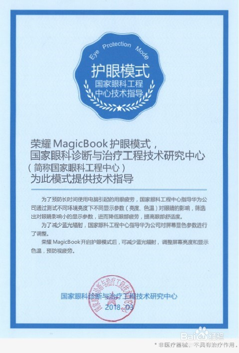 荣耀 MagicBook系列护眼模式由国度眼科诊断与治疗工程手艺研究中间供给专业的手艺指导!