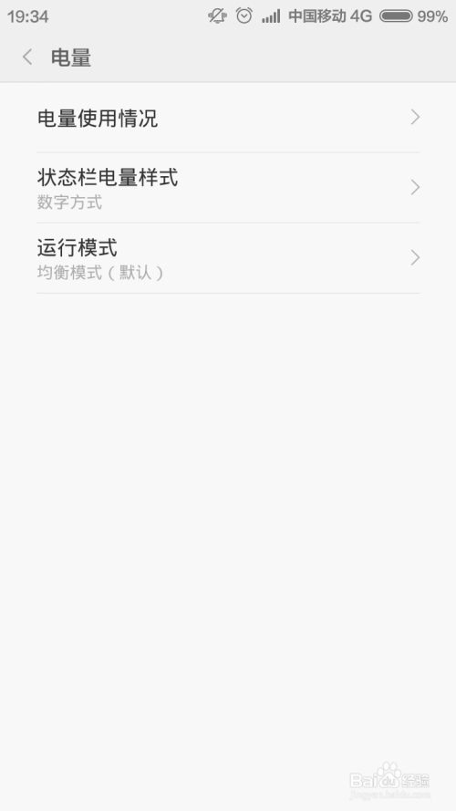 进入手机系统电量设置今后,我们会看到第三个设置选项,点击运行模式,然后将模式选项设置为“机能模式”。