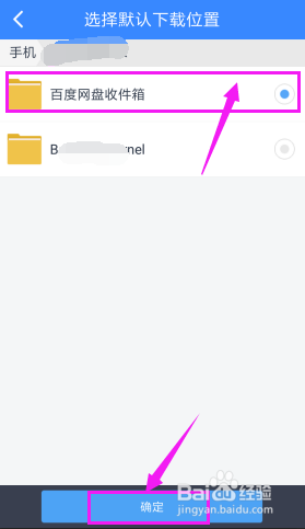选择我们要点窜当作的阿谁文件夹,然后点击【确定】。如图。点击后,就设置当作功了,会直接返回上一个页面,我们再次点击【默认下载位置】,就可以看到位置已经更改当作我们方才设置的阿谁文件夹了。
