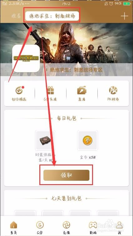 我们可以经由过程搜刮功能搜刮我们想方法礼包的游戏,或者在手机游戏栏中找。这里我以刺激战场为例子。其他手游的游戏礼包的领取也是一样的。如图所示。