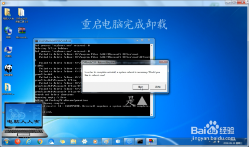 卸载完毕,点击是→重启电脑才能生效。
