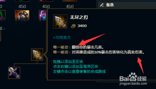 出了一件暴击装之后,我们就可以出无尽之刃了,无尽除了增添进犯力之外,它还能翻倍暴击率,部门危险还能转化为真实危险,年夜年夜提高了奎因的作战力。