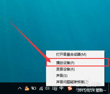 接下来,建议大师对着桌面上的声音图标击右键,点击选择“播放设备”选项。
