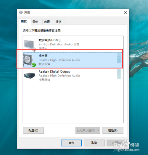 打开播放设备页面之后,我们需要细心查抄一下默认声音的播放设备是否正常。默认的声音播放设备是扬声器,若是声音播放设备默认不是扬声器,那么十有八九就是这里呈现问题了。