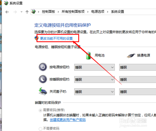接下来,在打开的设置页面中,我们点击选择"更改当前不成用的设置"选项,进入与之对应的设置页面。