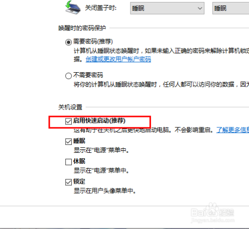 在关机号令的菜单页面下,我们就可以看到关于是否启用快速启动功能的选项页面,这里我们双击打开该设置项。