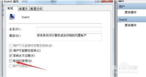 然后找到一个GUEST的用户组,查看该用户的开启环境,点击鼠标右键属性