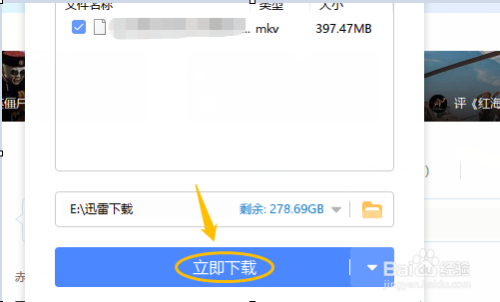 然后在迅雷软件的上方就会弹出一个下载窗口,此时我们以看到它里面包含的文件名以及文件大小,我们只需点击“当即下载”即可;