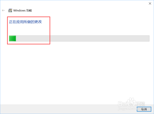 接下来就是添加功能的进度条了,若是你的电脑系统不撑持添加该功能,那么此时必定是不克不及添加当作功的,换句话说,若是可以添加当作功,那么就证实系统是撑持该功能的。